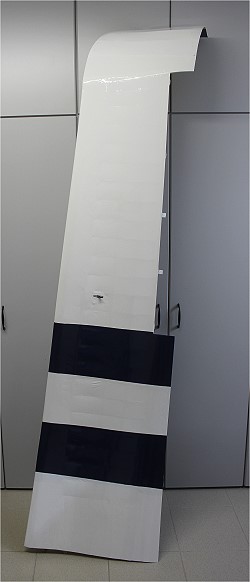 Hier sieht man, wie die Folie bei jedem Streifen unten umgebügelt wurde.