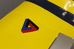 Dunkelblau/gelb Oberseite, weiß Unterseite.