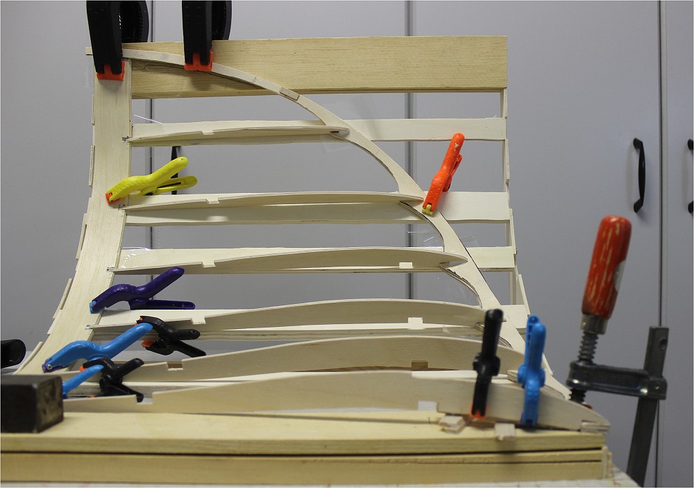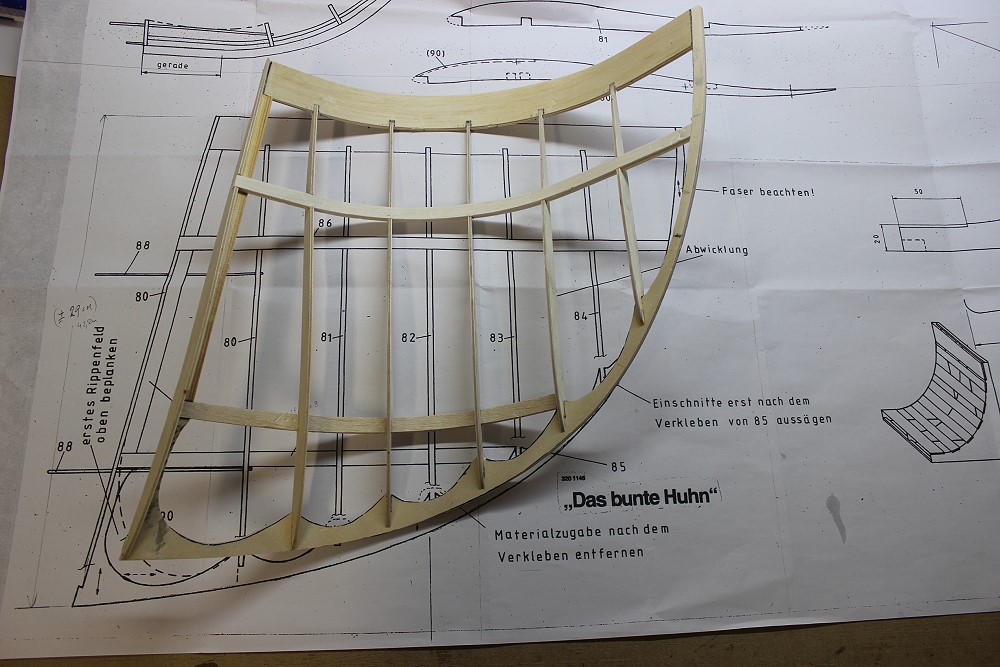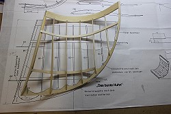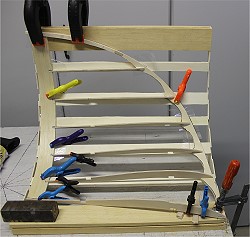Die Nasenleisten werden aus 2 Teilen aus 3mm SpH auf der Helling zusammengeklebt. Vorher wässern.
