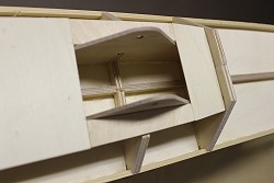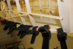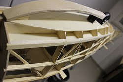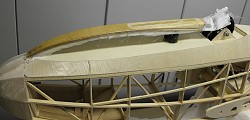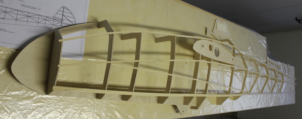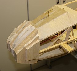 Das Rumpfbrett am Ende habe ich mit Balsastreifen an die Spanten angepaßt. |