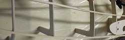 Tipp! Die Spanten 3 und 4 noch nicht mit den Gurten verkleben. Erst wenn beide Hälften zusammengeklebt werden, kann man die Spanten mit den Gurten verkleben. Sonst passen die beiden Hälften in diesem Bereich nicht zusammen. |