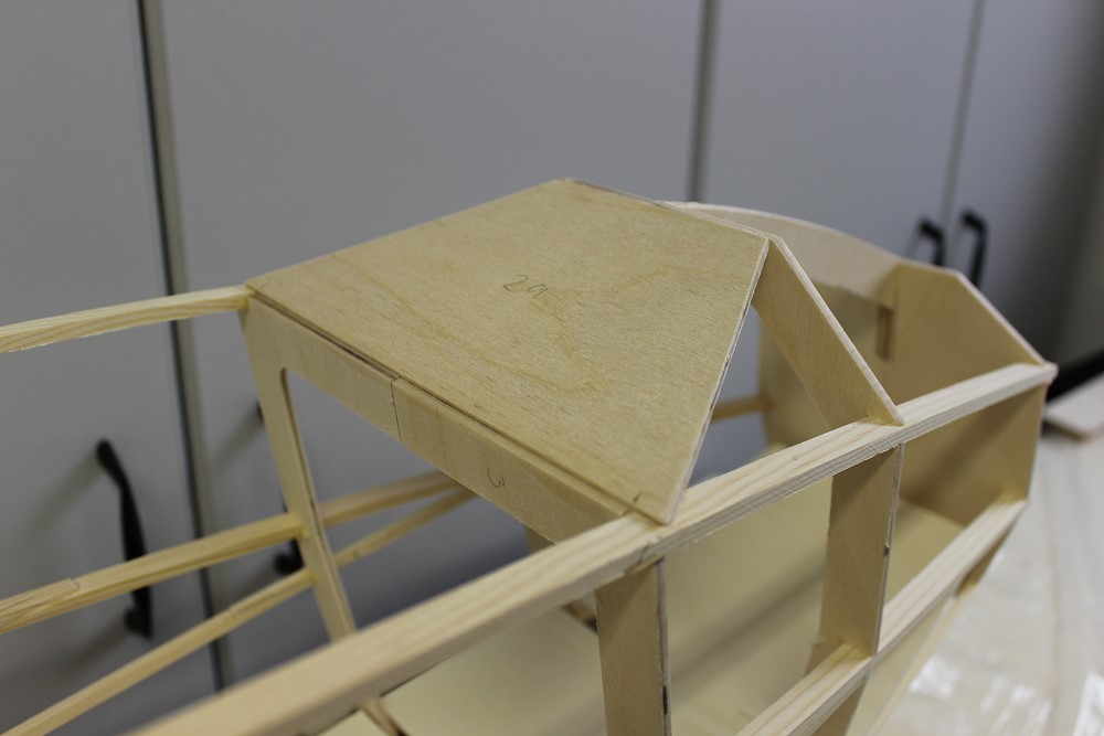 Der Rumpfvorder- und -oberteil wird mit 0,8mm SpH beplankt. |