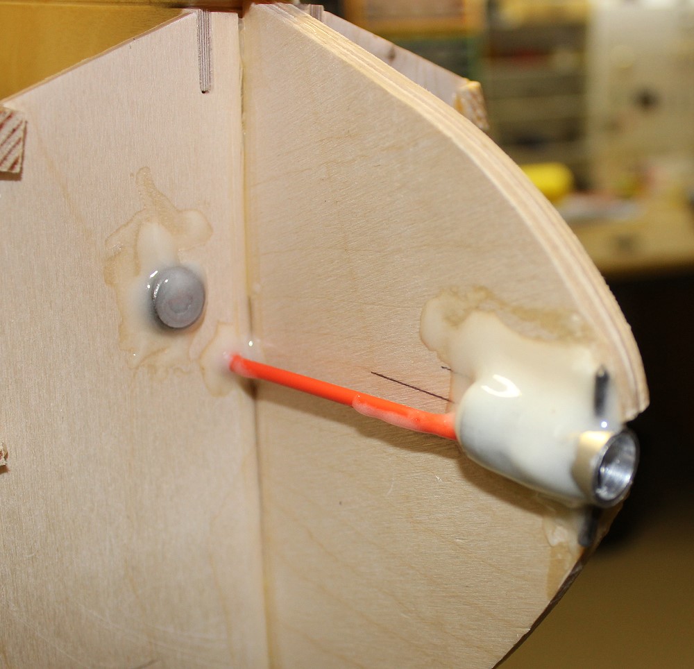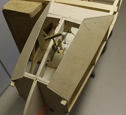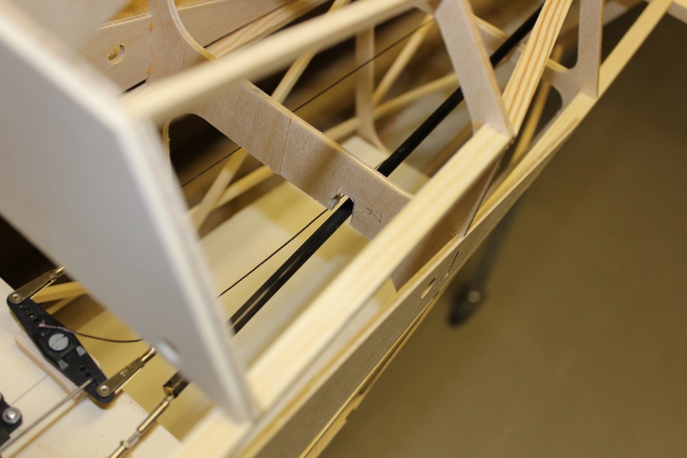 Den Spant 7 mußte ich ein wenig ausnehmen, damit die Schubstange durchgehen kann. |