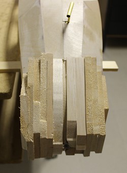 Der Nasenklotz aus 15mm und 10mm Balsabrettern. |