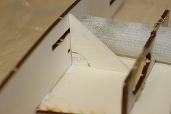 An der 1. und letzten Rippe habe ich diese Verstärkungsecken zur Nasenleiste eingeklebt. |