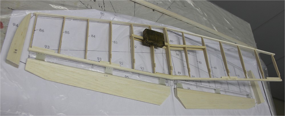 Rippen. nur in der Mitte kurze Holme, vorne Hilfs- und Nasenleiste, hinten HR aus je 2 Teilen.