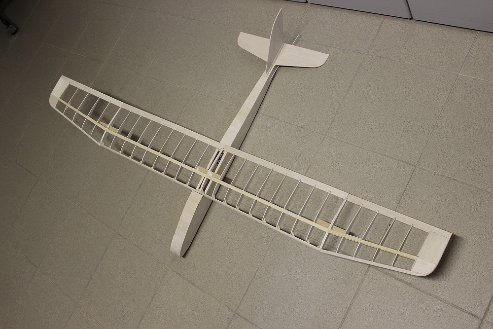 | Flügel fertig beplankt, Höhen- und Seitenruder befestigt. | |
