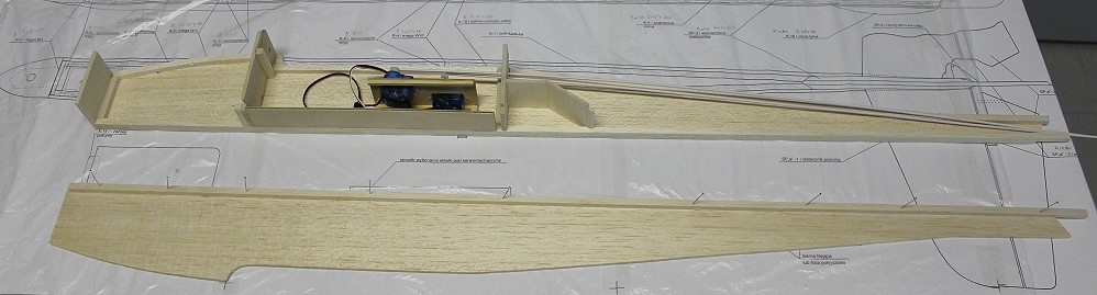 Servobrett geklebt. Nicht vergessen - 2 Löcher für die Bowdenzüge und