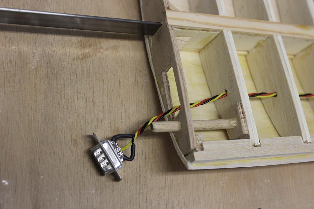 Servokabel für Querruder mit D-sub-Stecker. |