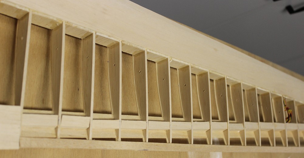 Die Querruderverkastung besteht aus 4mm Balsa im Abstand