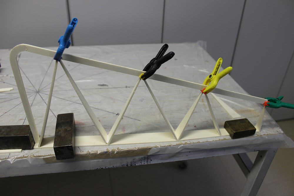 Weil die Rippenenden ziemlich diffizil in der Endleiste sitzen, werde ich über die Stöße SpH-Ecken kleben. |
