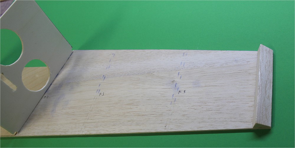 Die Seitenwände sind aus 3mm Balsa. Zwischen Spant 1 und 2 werden sie
