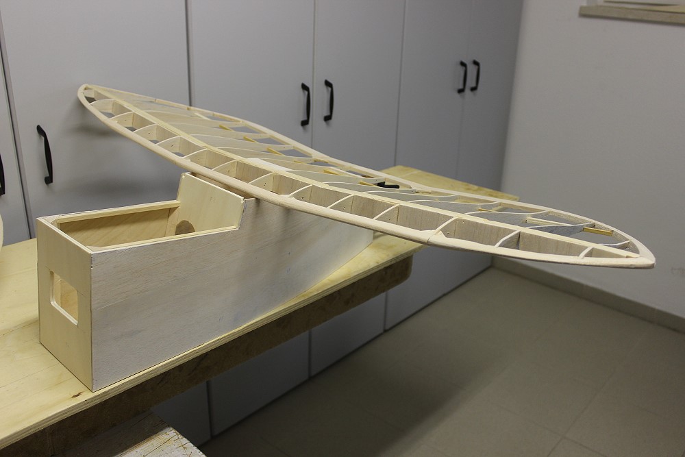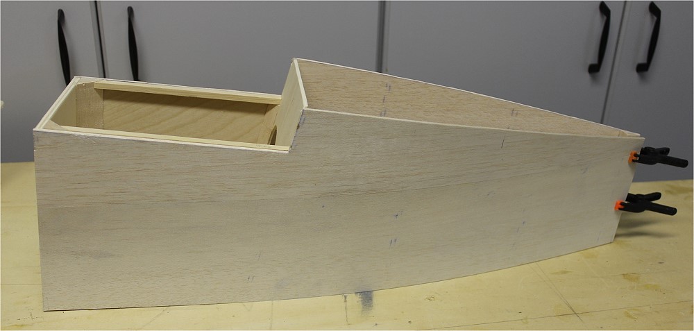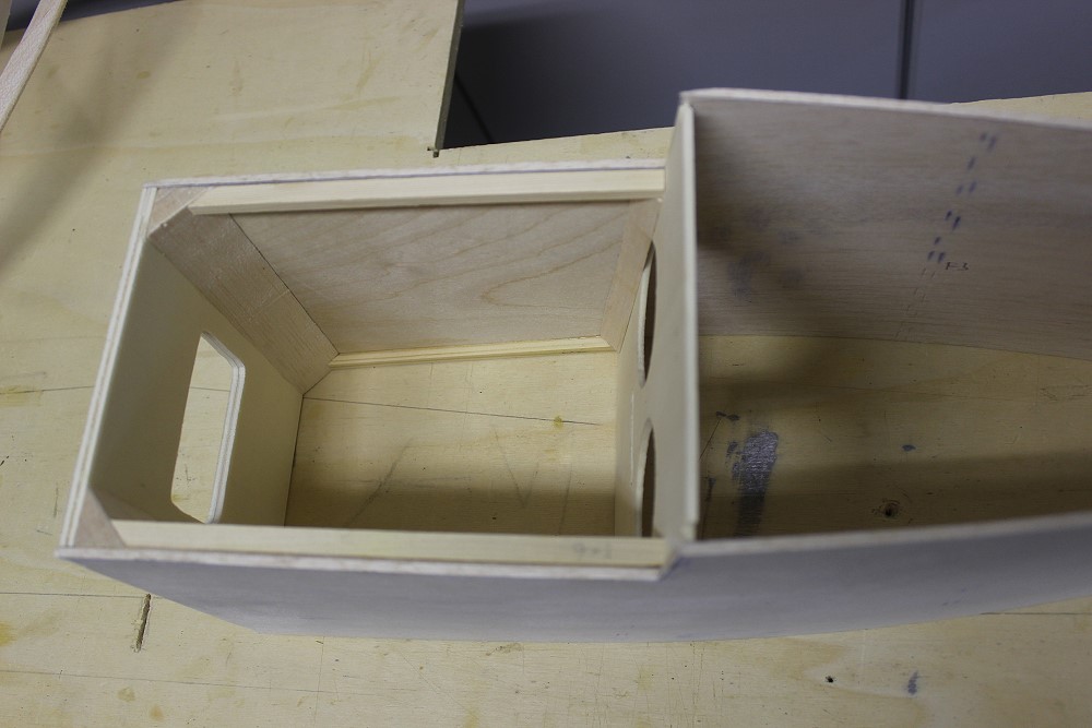 Der vordere Rumpfkasten nimmt später die beiden Servos und die Elektrik