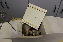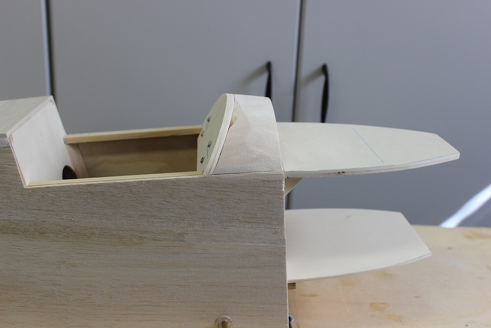 Der Kabinenbereich wird mit einem Deckel mit dem Piloten drauf