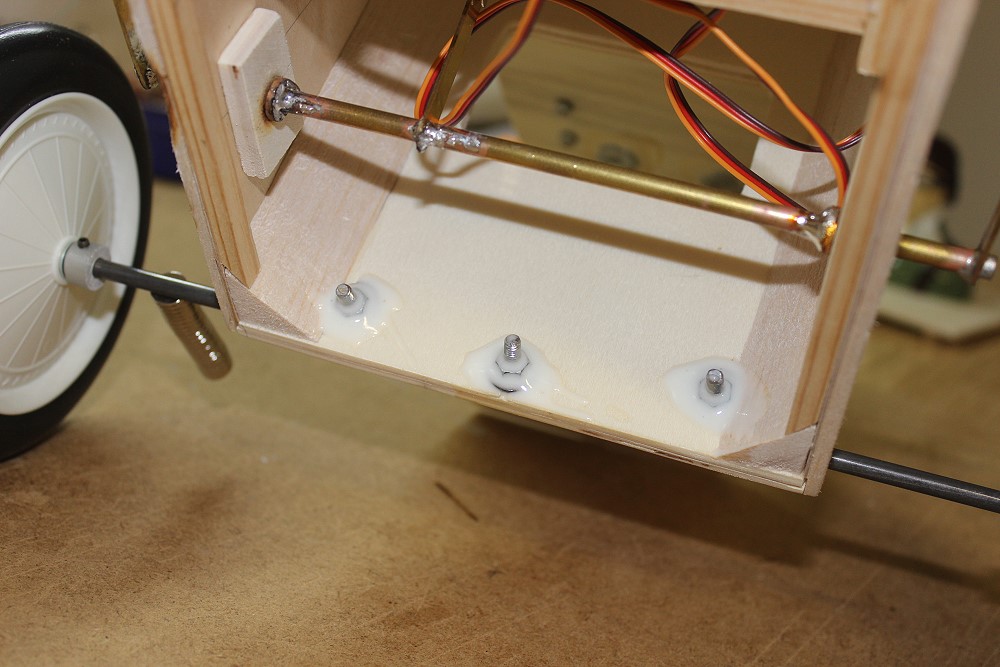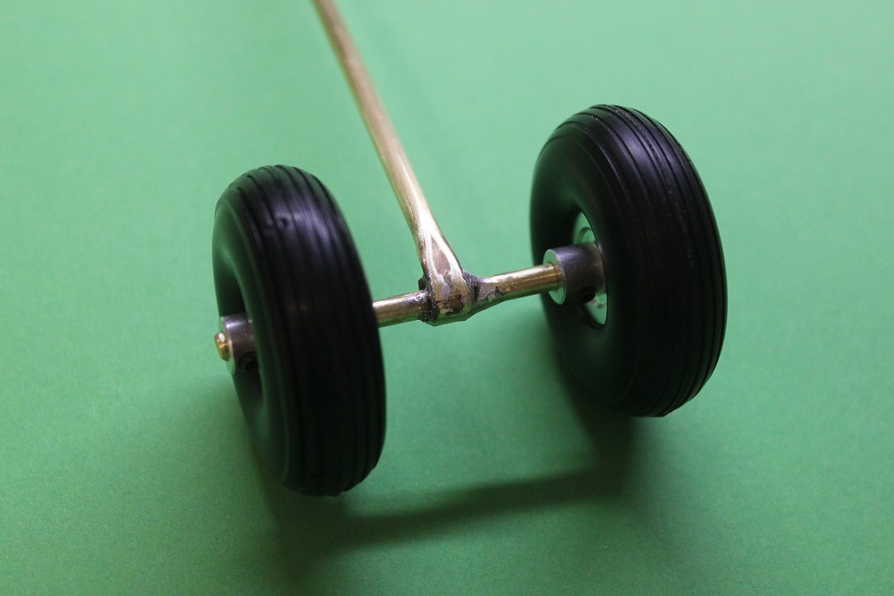Räder mit Achse verbunden und an der Befestigung angelötet. |