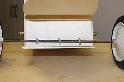Die Achse wird mit Haken aus M4-Gewindestangenstücken gehalten. |