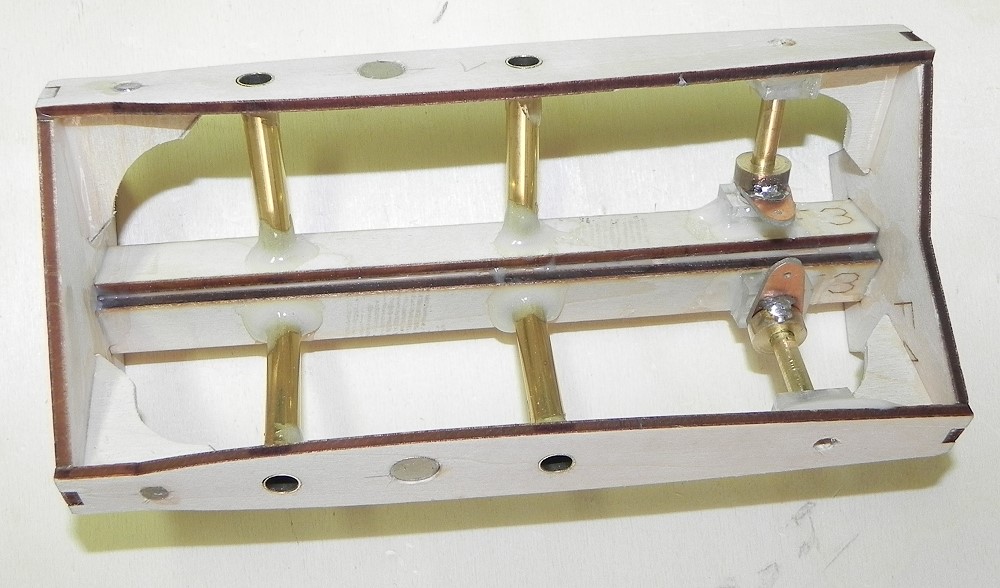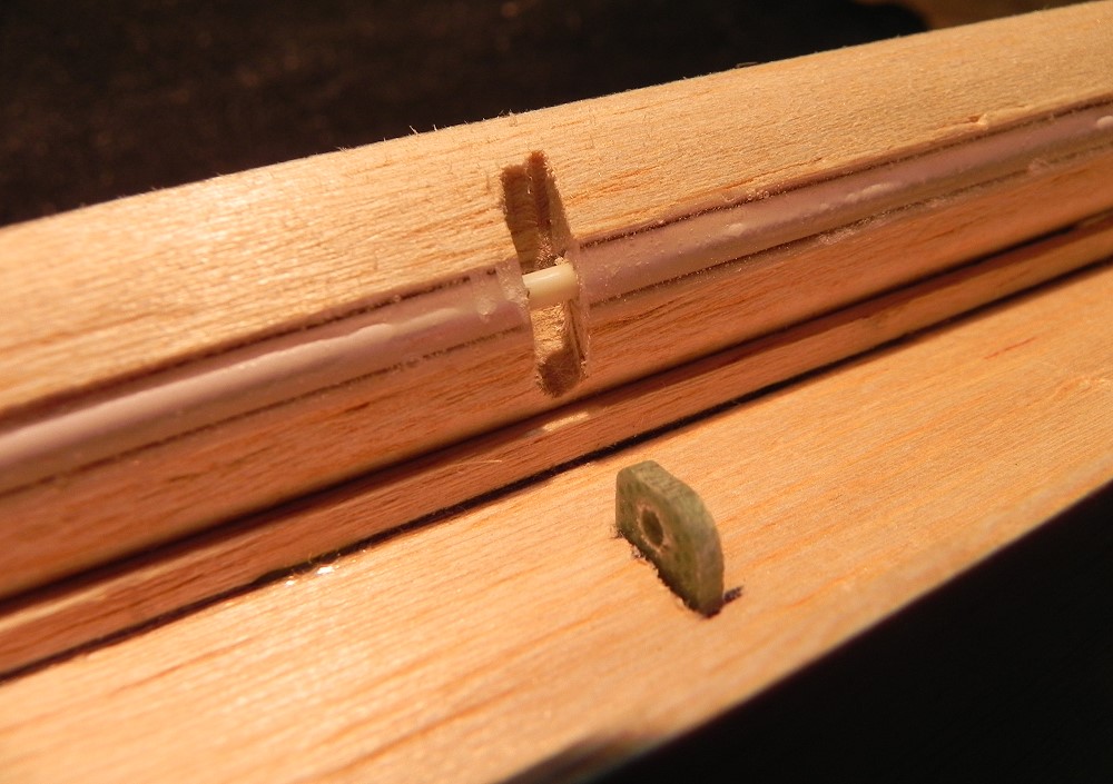 0,6mm Ms-Blech eingelötet. Den Sechskant im Ruder habe ich auch