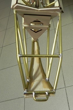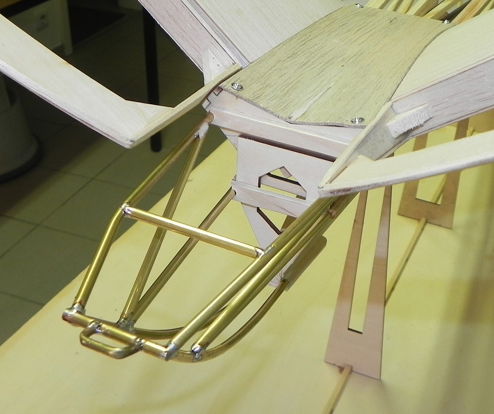 Den Bürzel verkleide ich mit 2mm Balsabrettchen. Ist zwar schade um die schöne Optik der Messingrohre, aber das wäre nicht so ganz original. |