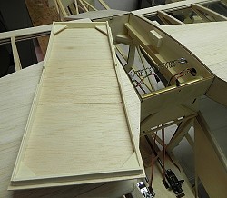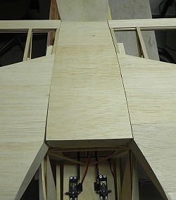 Hinter dem Flügel ist ein gerader Übergang vorgesehen, der noch mit 2mm Balsa beplankt wird. |