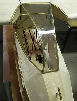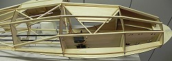 Die Strebenlager am Rumpf habe ich mit Balsa verkleidet, damit die Bespannung Halt hat. |