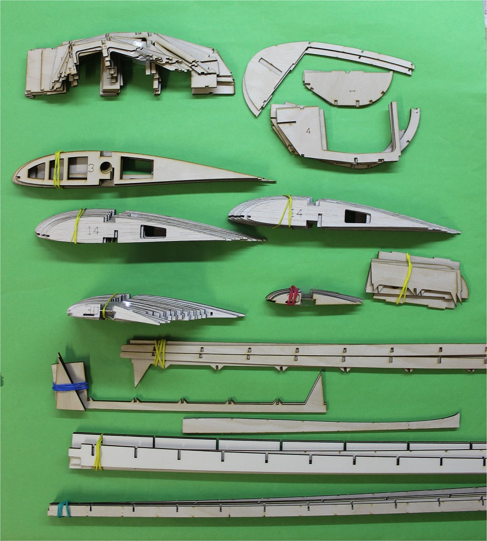 Das sind schon mal alle Rumpfspanten und Flächenrippen.