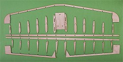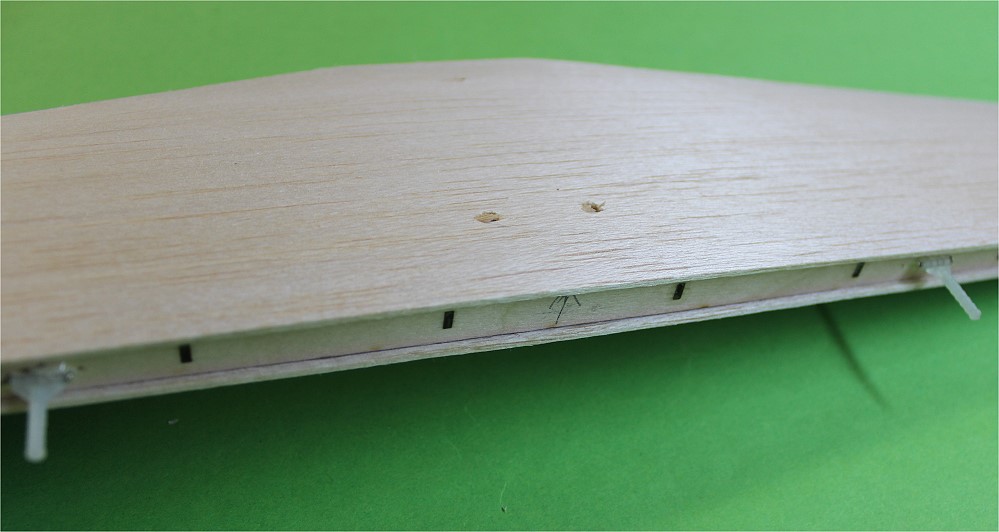 Die Beplankung (1,5mm Balsa) der Dämpfungsfläche lasse ich ein paar Millimeter überstehen. So entsteht quasi eine Hohlkehle.