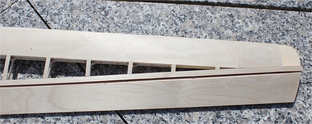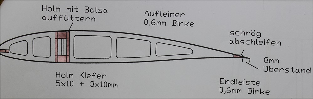 Der Hilfsholm ist mit 3mm Balsa einseitig verkastet. |