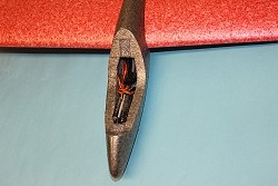 Ich wollte den Akku unbedingt vor dem Empfänger unterbringen, damit er bei einer harten Landung nicht den Empf. beschädigt.