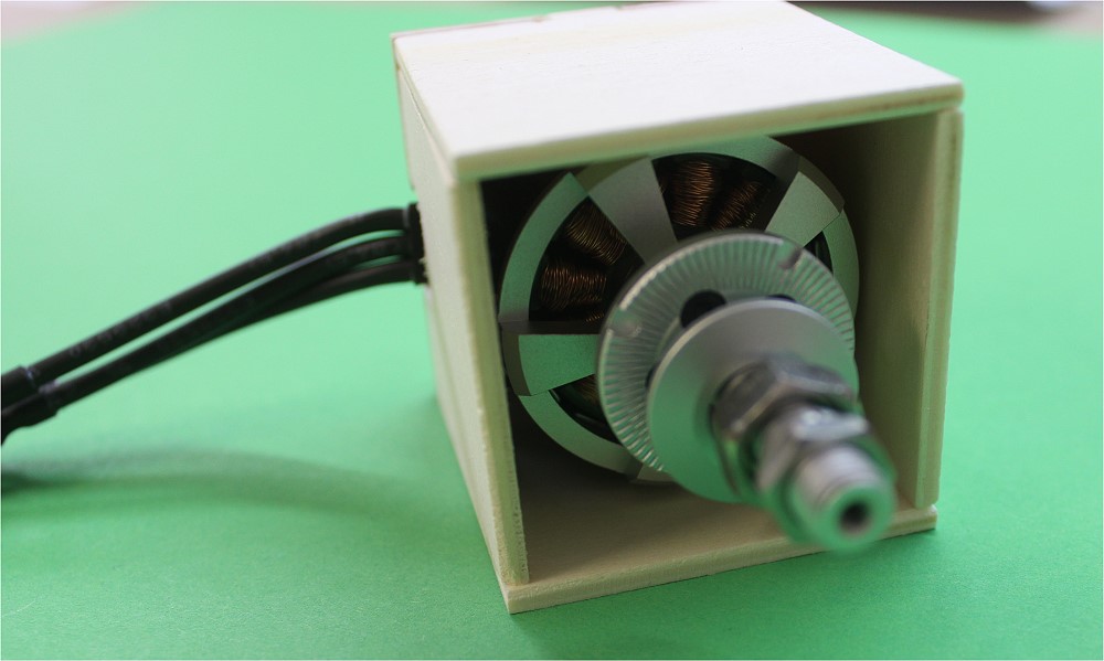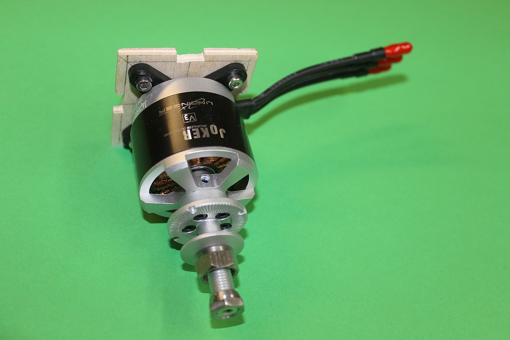 Motor auf ein 4mm SpH-Brett geschraubt.