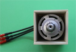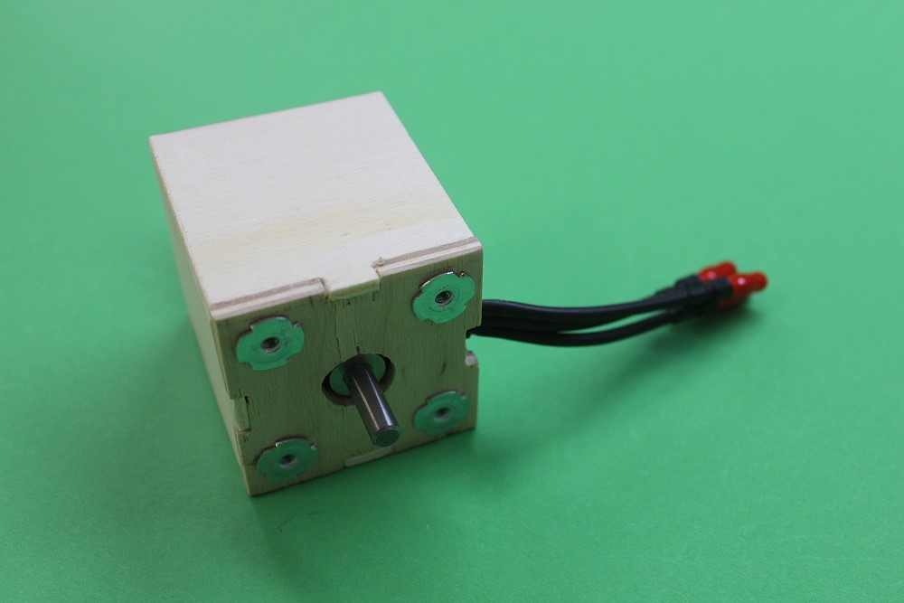 In der Mitte ein Loch für die Motorachse und unten eine Öffnung für die Kabel.