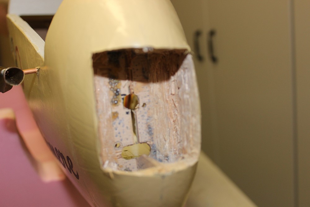 Ich habe den Kopfspant durchgebrochen, damit der Motor noch weiter hinter kommt.