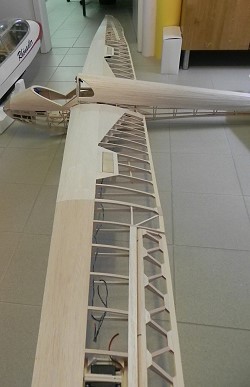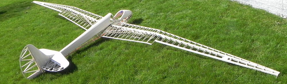 14.4.13: Rohbau schon mal zusammengesteckt - sieht gut aus! Es fehlt noch die Beplankung und die Querruder. |