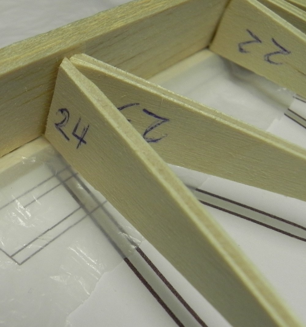 Die Qu.-Rippen werden stumpf an eine Balsaleiste