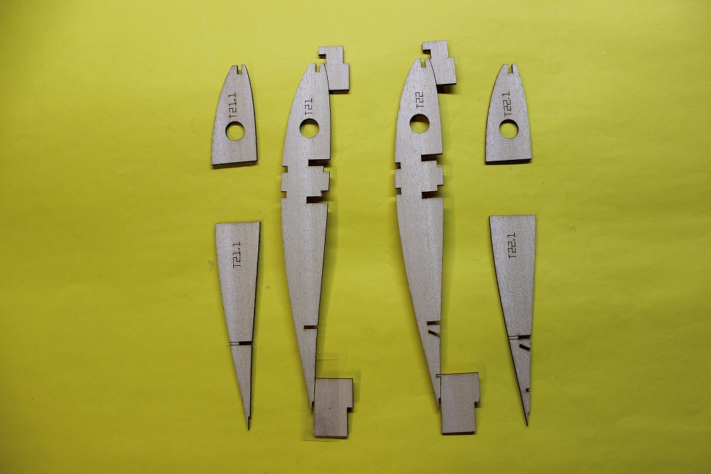 Rippen verklebt, Holmleisten eingesetzt, Endleiste auch. |