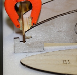 Hier ist die Abschlußrippe schon mal aufgestgeckt. Das Loch in der