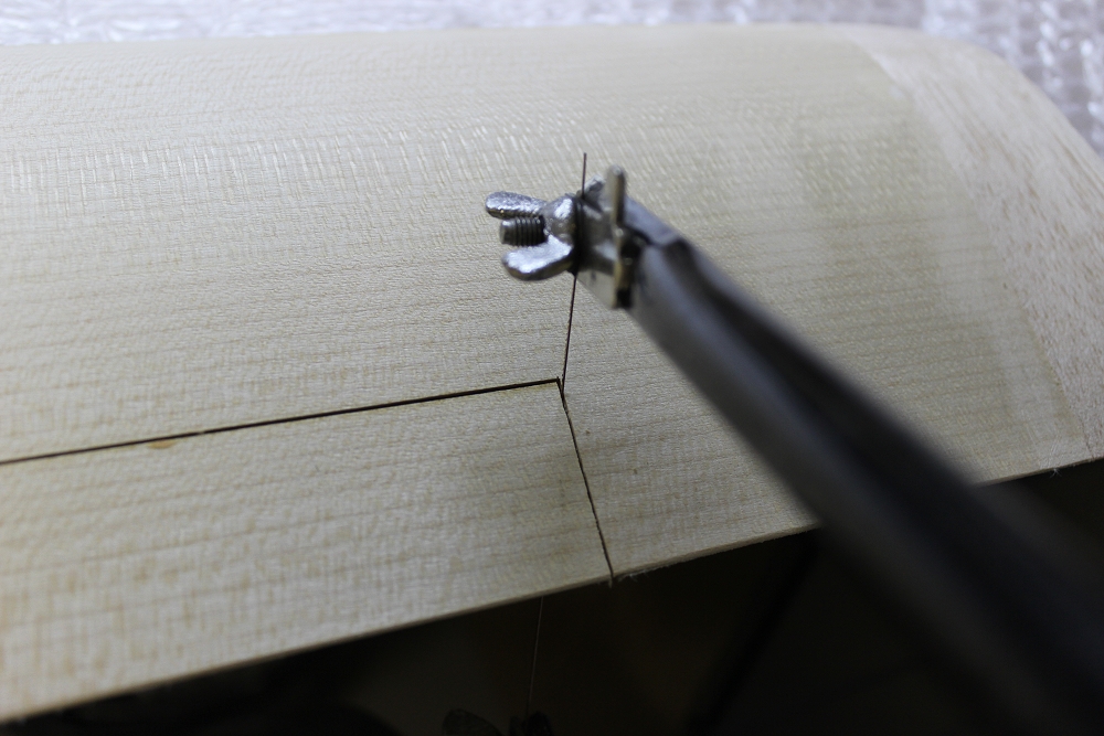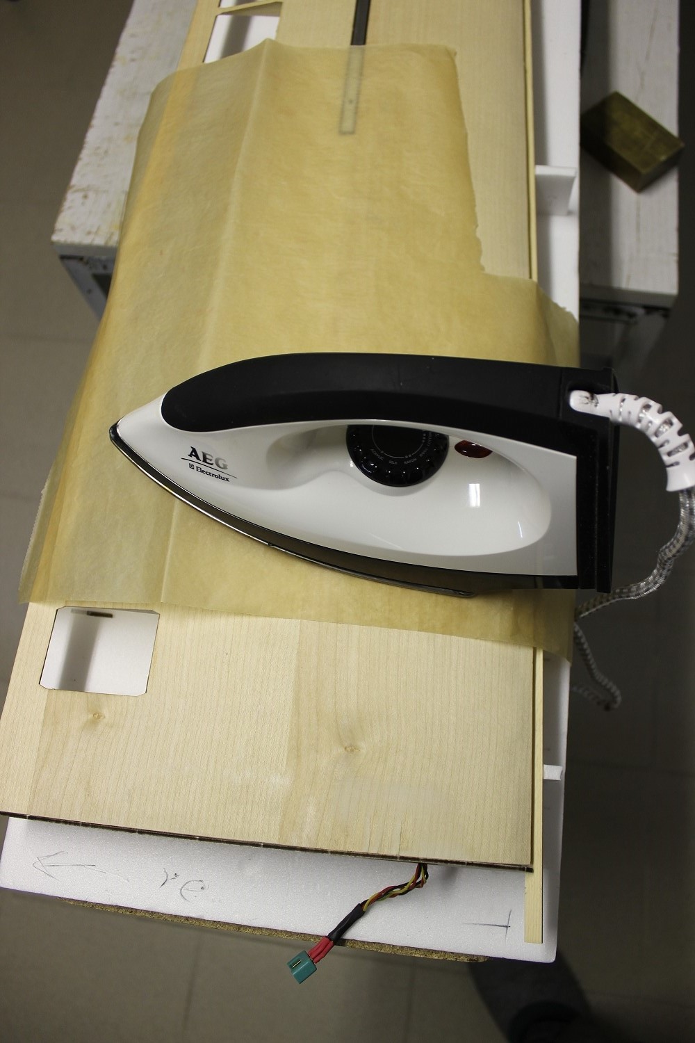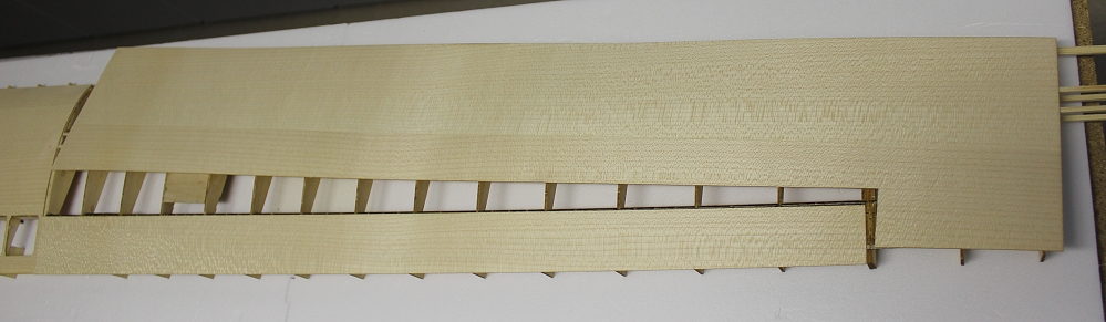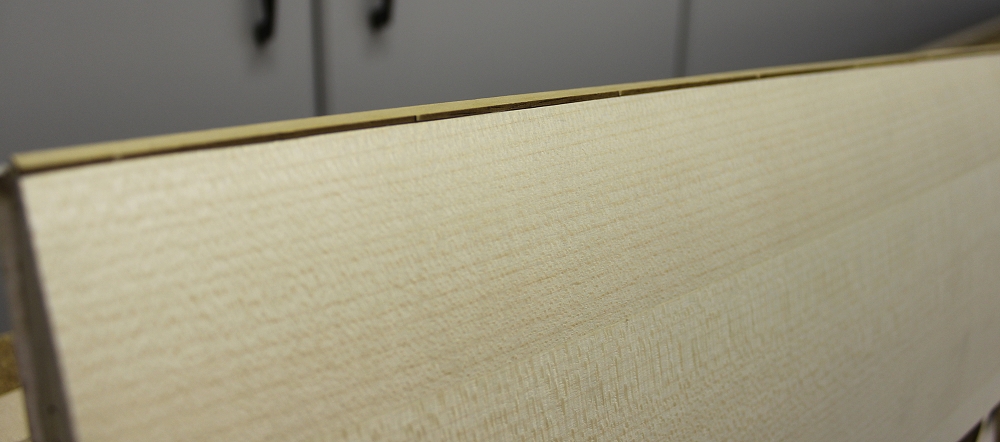 Oberseite fertig. Beplankung ist aus Ahorn-Furnier mit einer