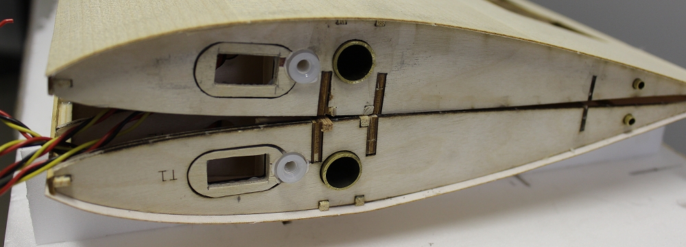 Der Deckel auf dem Querruderservo war bereits in der Beplankung