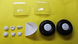 Der Pilotenschutz aus PU-Schaum (2 St. lächerliche 15,90) und der Ölkühler (Tiefziehteil aus Poystyrol - Cent-Artikel) |