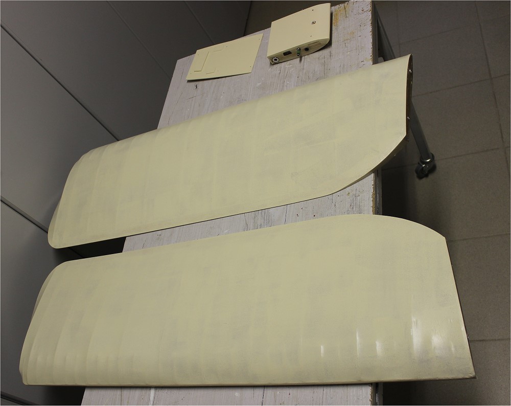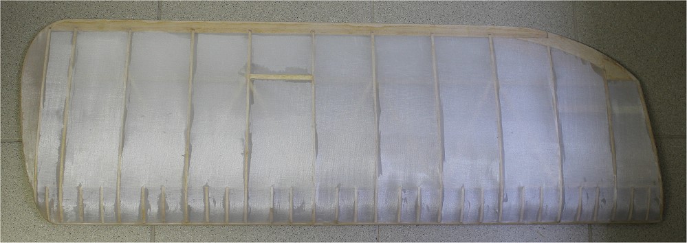 Alles außer den Flügeln wird mit SOLARTEX weiß bebügelt. Der ganze Flieger wird hinterher sowieso lackiert. |
