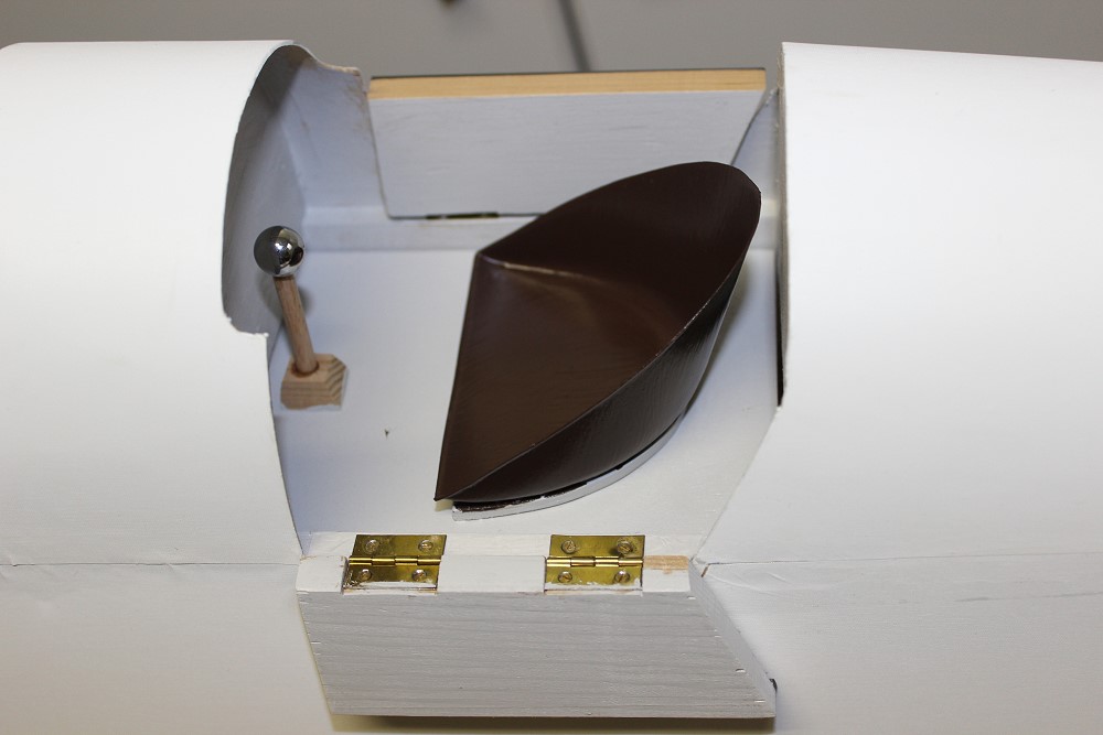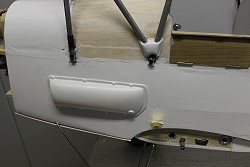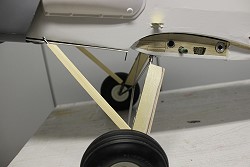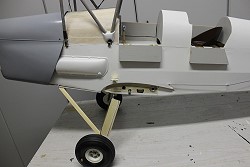 Die Fahrwerksstrebenverkleidung aus Kiefernleisten und 2mm SpH, hinten rund geschliffen. |