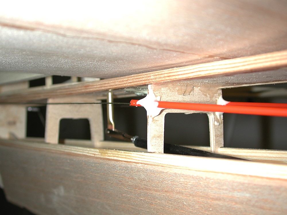 Die Rumpfdurchführungen für die SR-Litzen; das HR wird mit einem Kohlerohr und 2,5mm Gabelköpfen betätigt (noch nicht eingeklebt) |