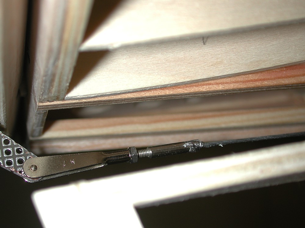 Ruderhorn für das Höhenruder - Ms-Blech mit aufgelöteter 4,5mm Ms-Stange; von rechts gesehen ... |