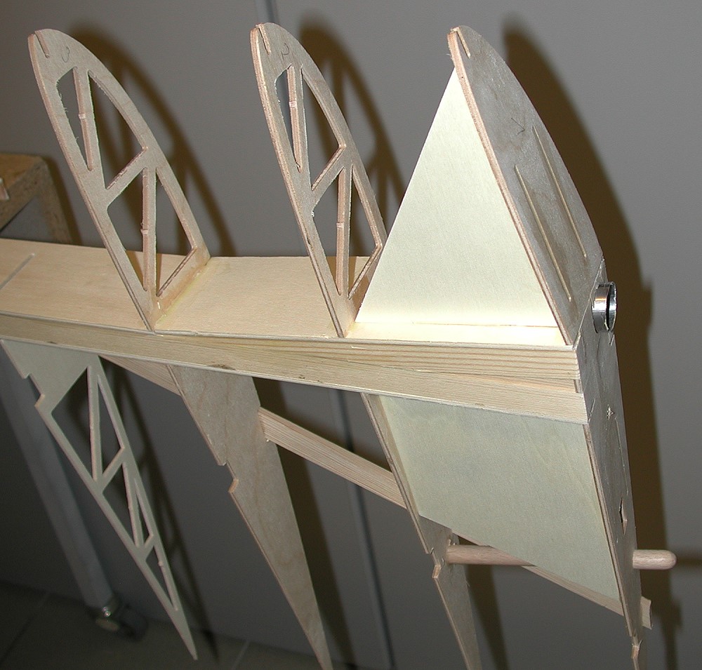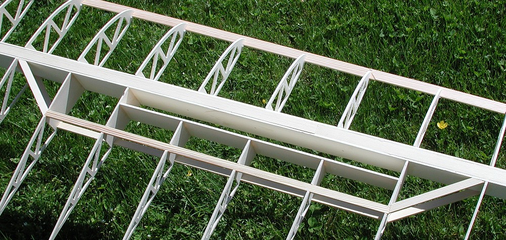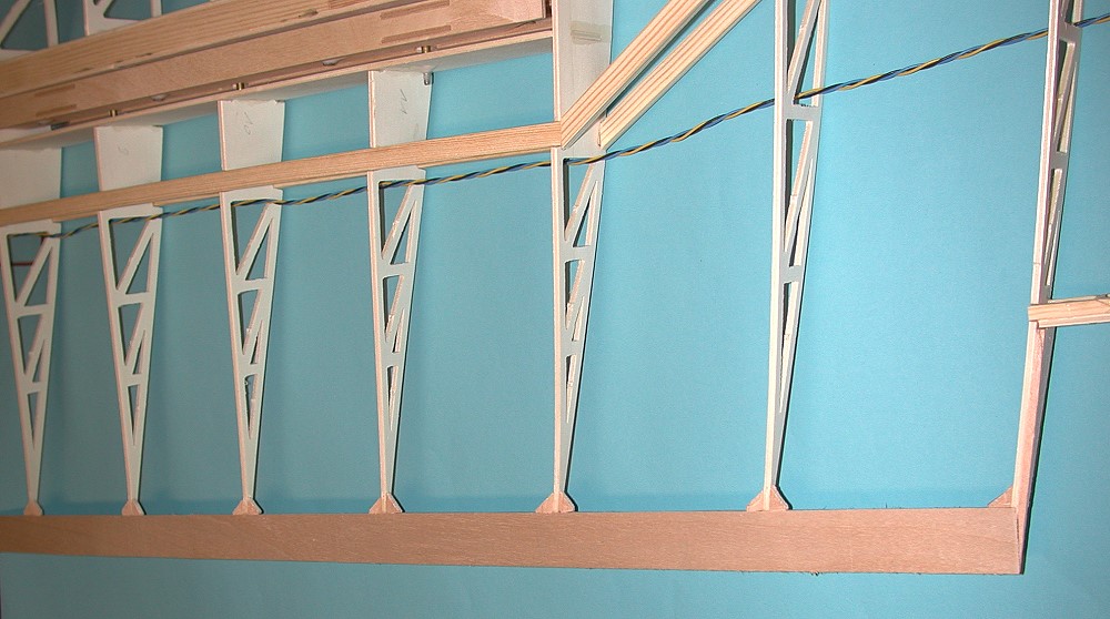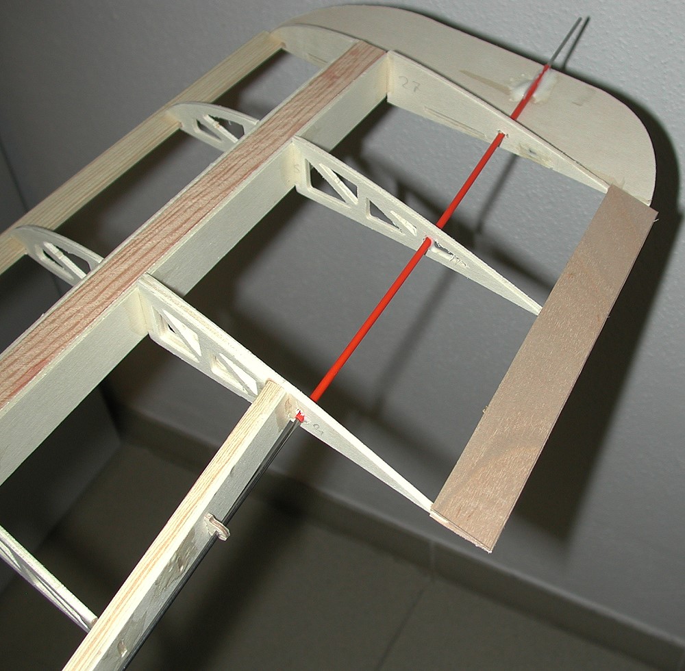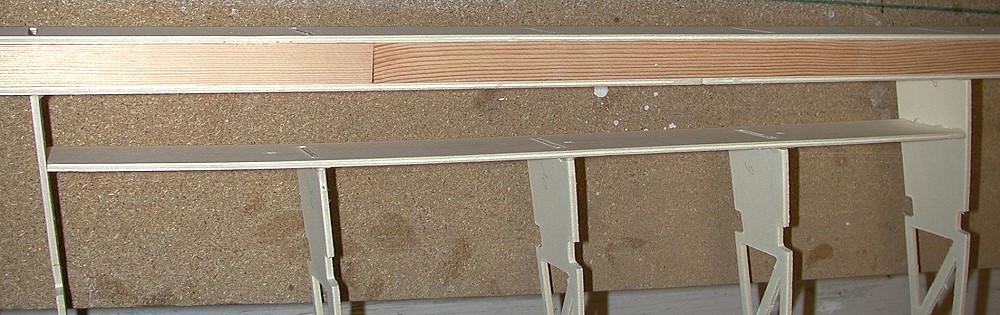 Querruderholm: 2x5mm Kiefernleisten, darauf ein Sperrholzholm. |
