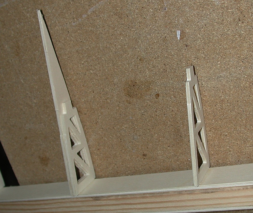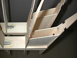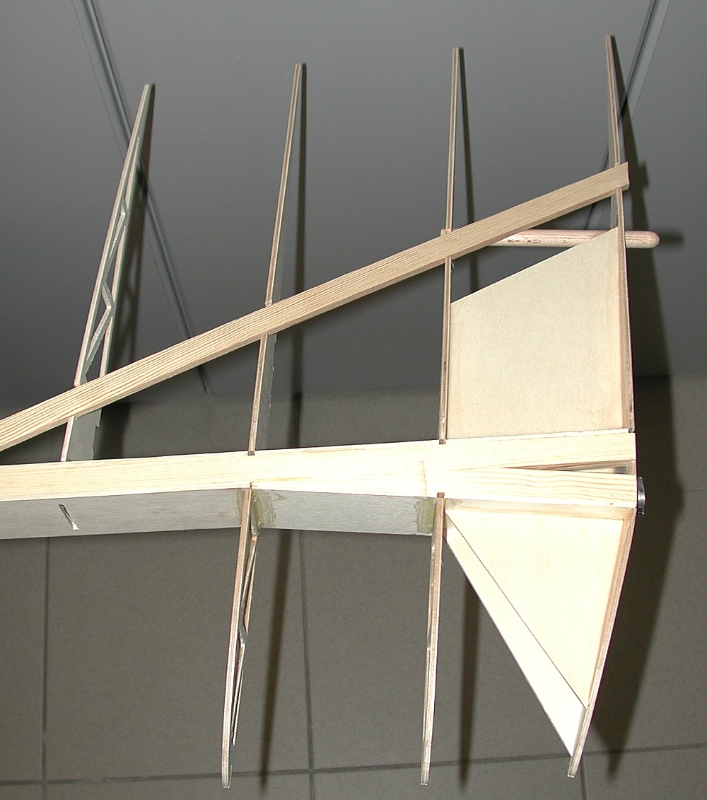Die Steckungsrohre sind eingeharzt, das letzte Stück der Holmverkastung eingeklebt und die schrägen Kiefernleisten sind auch eingepaßt. |