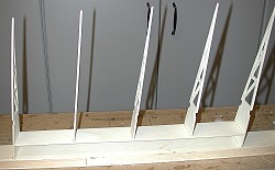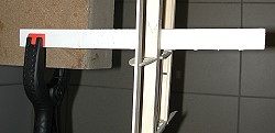 So kann man den Holm am Baubrett befestigen, um die vorderen Rippenhälften einzusetzen. |