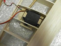 Die HR-Anlenkung mit einem Servo hinten im Rumpf. |