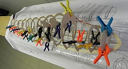 Die 13 Spanten des Rumpfes sind mit GGL (Gehirn-Gesteuerte-Laubsäge) - nicht CNC - hergestellt. |