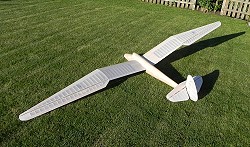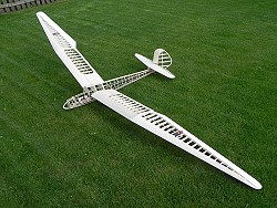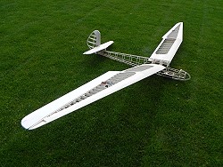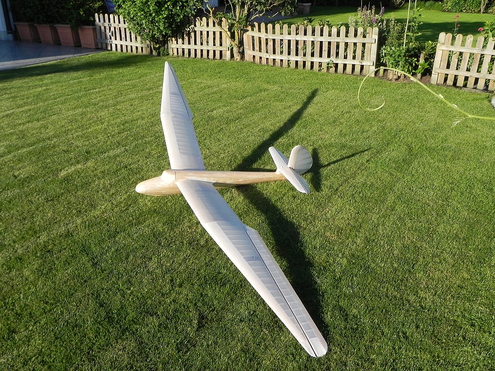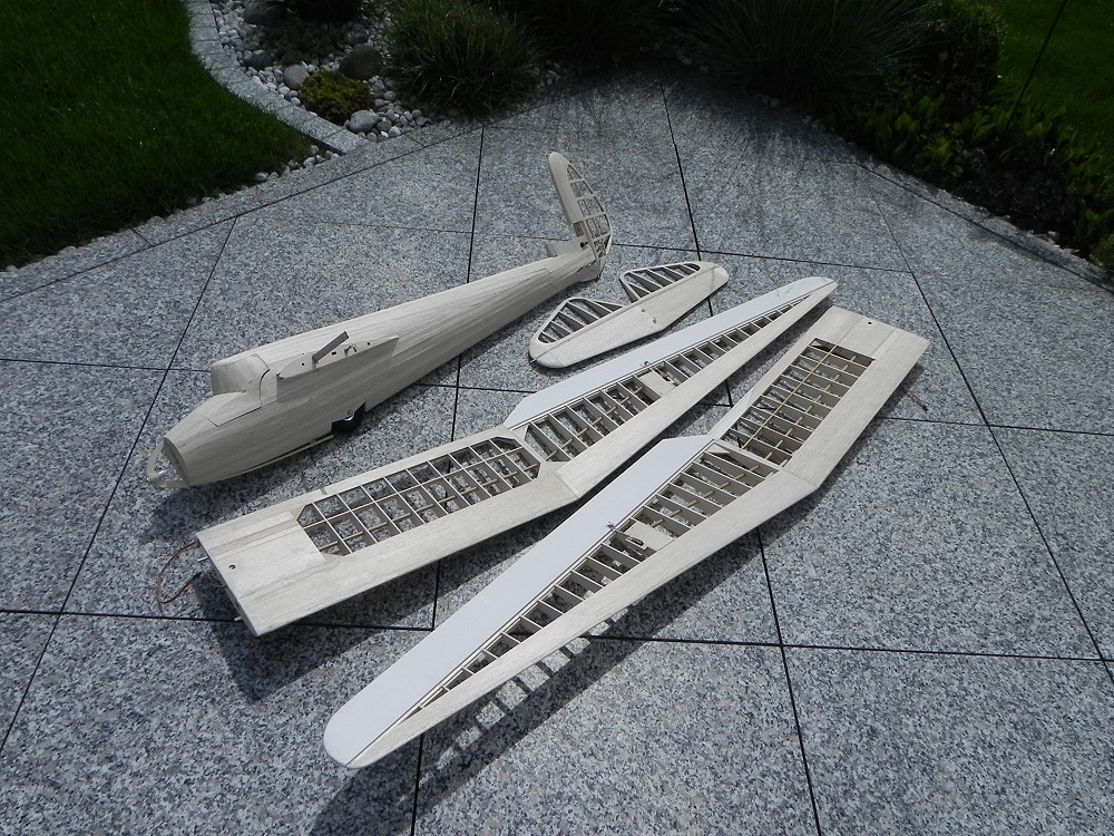 28.6.2011 Flächen und Leitwerke mit Koverall bespannt, Rumpf mit GfK (49g/m²) belegt. |