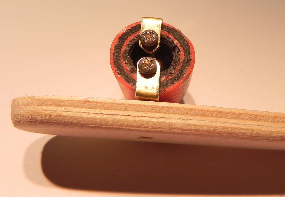 Als Dämpfung dient ein Stück Gartenschlauch, in den nochmal derselbe Schlauch (kleinerer Durchmesser) eingeschoben wurde. |