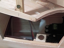 Kabinenhaubenbefestigung mit 2 Magneten und 2 Eisenschrauben, hält bombig. |